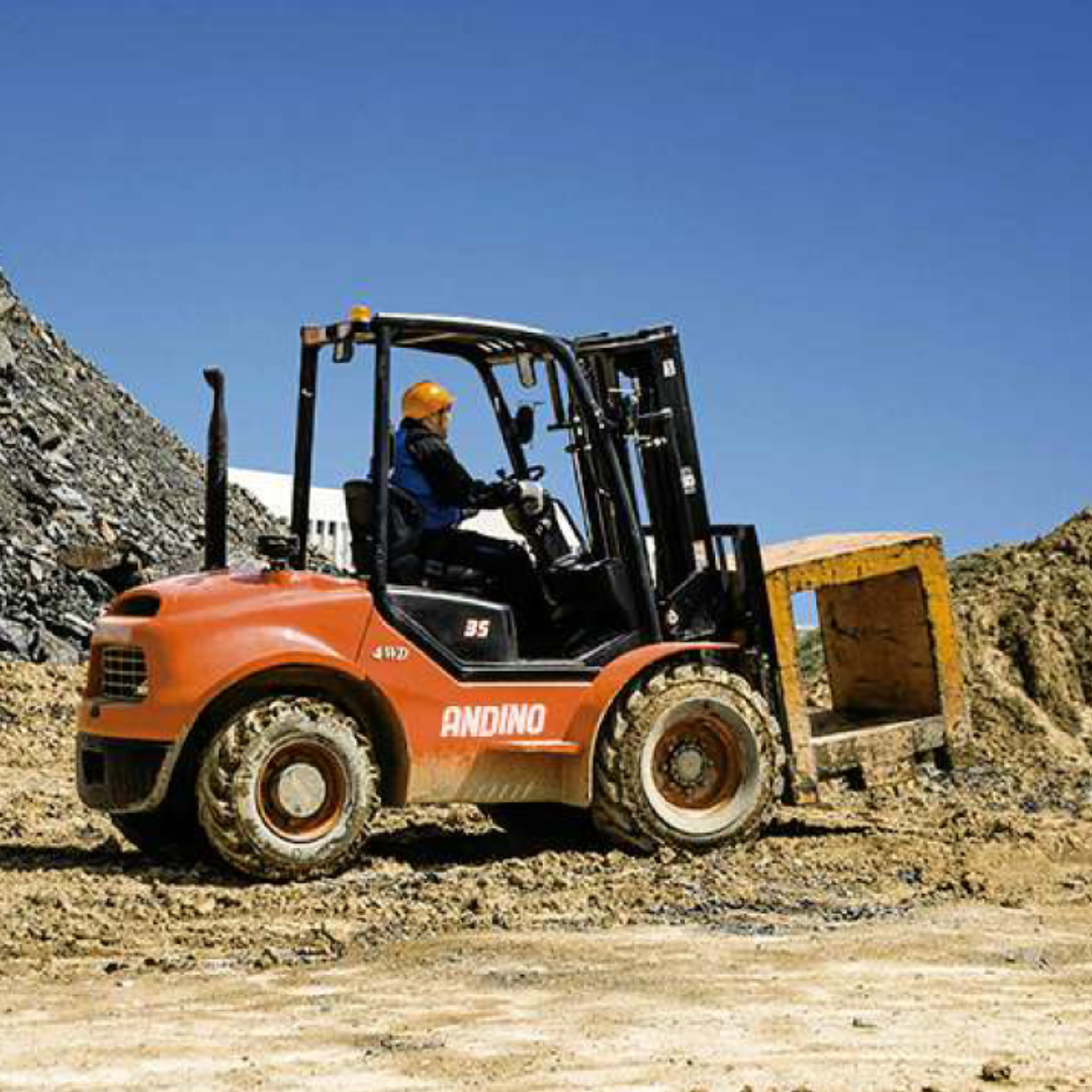 - Suspensión y Neumáticos: Aunque no se menciona explícitamente, es probable que estos montacargas cuenten con un sistema de suspensión reforzado y neumáticos diseñados para terrenos accidentados, lo que mejora la comodidad del operador y la protección de los componentes mecánicos.